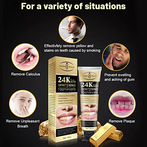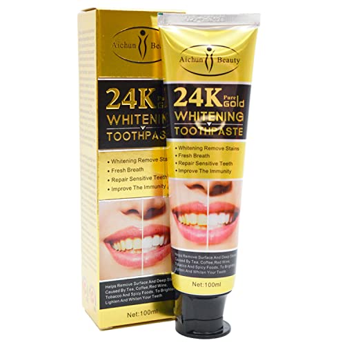 AICHUN BEAUTY 24K Pure Gold Whitening Toothpaste Remove Stains Repair Sensitive Teeth Fresh Breath 100ml/3.38oz