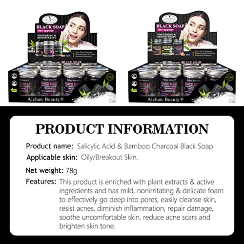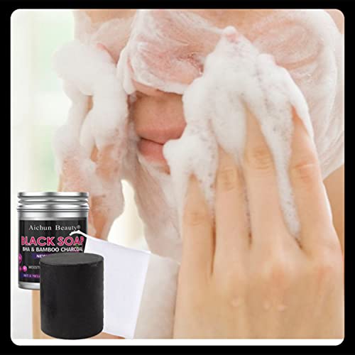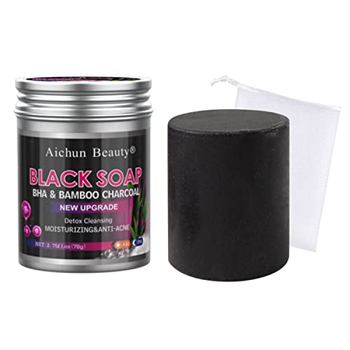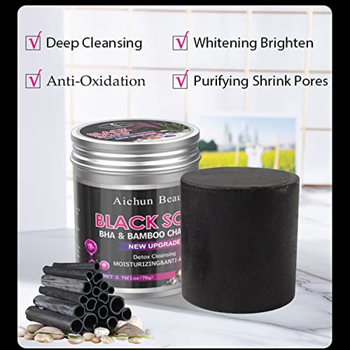 AICHUN BEAUTY Black Soap BHA Bamboo Charcoal Detox Cleansing Moisturizing Anti-Acne PH Balance Oily Breakout Skin 78g/2.75fl.oz