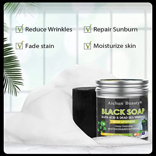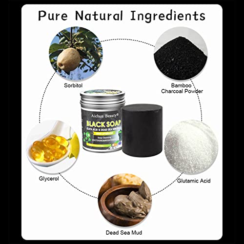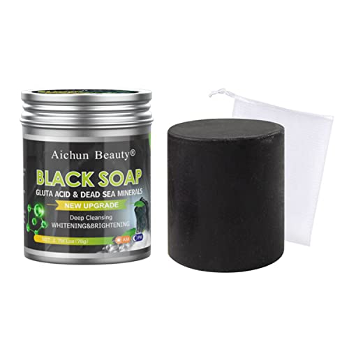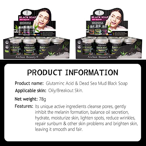 AICHUN BEAUTY Black Soap Gluta Acid Dead Sea Mud Minerals Deep Cleansing Acne & Oil Skin Nourishing Removes Dead Skin Cells 78g/2.75fl.oz