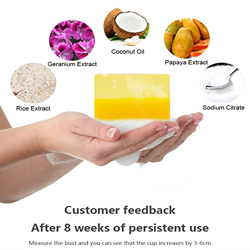 - Soap is made by high quality ingredients that can boost our breast leaving it more firmer and bigger. Results will be noticeable before the first 6 weeks, your breasts will realistically grow between a half of an inch to 2 inches in just 3 months. Product can be used as often as you’d like, best when used in the shower. The soap will not effect other parts of your body that it might run over.
