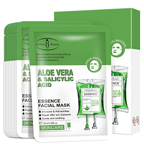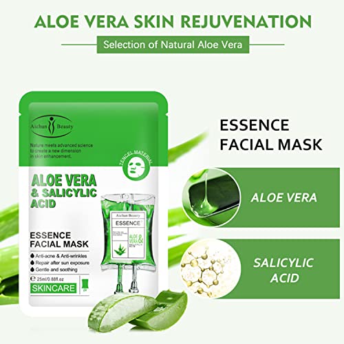 AICHUN BEAUTY Essence Facial Mask Tencel Material Anti-acne Anti-wrinkles Repair After Sun Moisturizing Deep Cleaning Contractive Pore 25ml/0.88fl.oz X 10pcs