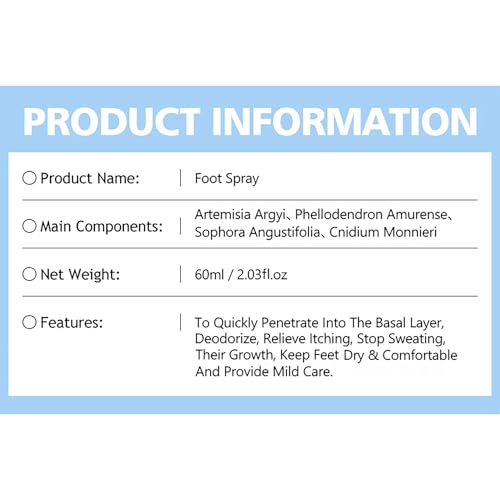- RELIEVE ITCHING ODOR: Foot sweat spray provide deep care for your foot, quickly relieve itching, remove odor, and bring deeply nourish.