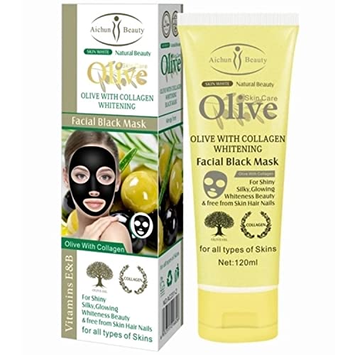 AICHUN BEAUTY Olive Collagen Facial Black Mask Vitamin E & B Shily Silky Glowing Beauty Dry Face Skin Wrinkles Clean Skincare 120ml/4.06oz