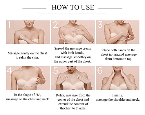 Details: The unique active ingredients can provide your breast with multiple nutrients, achieve a secondary natural & healthy development, enhance, firm and lift your breasts, making them full, perky, elastic and more attractive! USAGE: After bathing, put proper amount of this product into your palm, avoid your nipples, apply it evenly to your breast and massage for 3-5 minutes using the circular motions until complete absorption. INGREDIENTS : Water , Glycerin, Cetearyl Alcohol, Mineral Oil, Isopropyl Palmitate, Potassium C12-13 Alkyl Phosphate, Glyceryl Stearate, Chaenomeles Sinensis Fruit Extract, Mentha Haplocalix Extract, Carbomer, Capsicum Annuum Extract, Pueraria Lobata Extract, Triethanolamine, Diazolidinyl Urea, Methylparaben, Propylparaben, Fragrance.