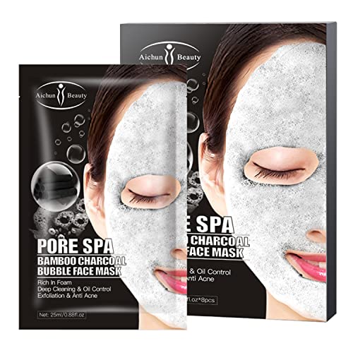 AICHUN BEAUTY Pore Spa Bamboo Charcoal Bubble Face Mask Deep Cleaning Foam Oil Control Exfoliation Anti Acne Facial Skincare 25ml / 0.88fl.oz (8 PACK)