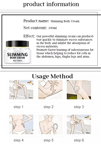 Details: Specification: 100ml Medical Formula Slimming Body Cream - 3 Days Effective Safety & Non-irritating Burning Fat / Shrink & Firming / Reducing Wrinkles The unique ingredients can quickly infiltrate into the skin surface, inhibit the formation of cellulites, remove edema, improve the areolar tissue and easily give a perfectly lubricated, delicate and attractive figure. Ingredients: Water, Butylene Glycol, Mineral Oil, Isopropyl Myristate, Caprylic/Capric Triglyceride, PEG-40 Sorbitan Stearate, Glyceryl Stearate, Cetearyl Alcohol, Dimenthicone, Caffeine, Sorbitan Stearate, Tocopheryl Acetate, Bisabolol, Xanthan Gum, Methylparaben, Methylisothiazolinone, Propylparaben, Parfum Usage: After bathing, put proper amount of this product into your palm, apply it evenly to skin and massage for 3-5 minutes using the circular motions until complete absorption. Precautions:If you feel unwell, please stop using it. Please avoid use on the skin around the eyes. Please stay away from children. Keep in a cool place and avoid high temperatures and direct sunlight.
