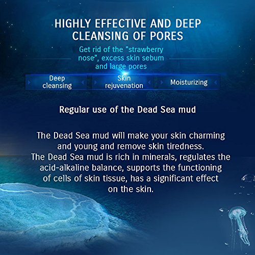 Details: Dead sea mud gives the product density and viscosity, along with good plasticity Deep-cleansing mask against blackheads with dead sea mud and charcoal. Deeply cleaned skin. Smooth and sleek skin. Removal of blackheads. The gifts of the Dead Sea. Gentle cleansing without dryness. Natural ingredients for beauty from the bottom point of the Dead Sea. The rich content of rare minerals and microelements. In the mud of the Dead Sea contains in 10 times more minerals than in other sources. Unique and excellent spa treatment is not inferior procedures from beauty salons. Magic of the Dead Sea mud. The secret of beauty of Cleopatra. For millennia in the Dead Sea kept a treasure, which in ancient times enjoyed the incomparable Cleopatra. Nowadays you can enjoy these treasures for your beauty Black mask for blackheads removal. Mild effect. Natural whitening. Highly effective and deep cleansing of pores. Get rid of the "strawberry nose", excess skin sebum and large pores. Deep cleansing. Skin rejuvenation. Moisturizing. Regular use of the Dead Sea mud The Dead Sea mud will make your skin charming and young and remove skin tiredness. The Dead Sea mud is rich in minerals, regulates the acid-alkaline balance, supports the functioning of cells of skin tissue, has a significant effect on the skin. 1. Stage. Softens the top layer of skin, allowing the pores to completely open 2 Stage. Effectively pulls out impurities out of the pores, leaving skin spotless. 3 Stage. Cleans the surface of the skin from excess oil and dirt, to prevent new blackheads. 4 Stage. Moisturizes and slightly whitens skin, gives it softness and smoothness after cleansing.
