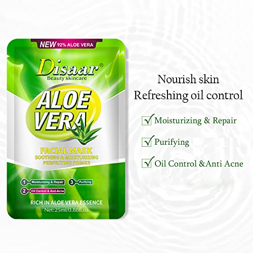 DISAAR Beauty Aloe Vera Facial Mask Soothing Essence Moisturizing Face Repair Oil Control Anti-Acne Purifying 25ml/0.88fl.oz (10 Pack)