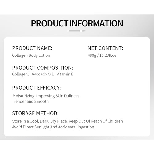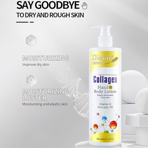DISAAR Beauty Collagen Hand Body Lotion Vitamin E Avocado Oil Deeply Moisturizes Firms Smooth Skin 480g / 16.23fl.oz