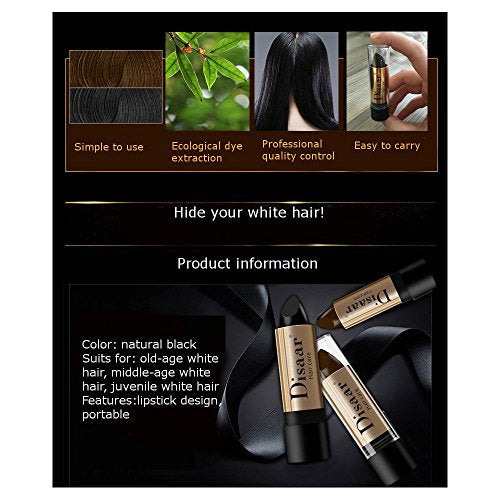 Details: Instructions Apply on clear hair Dry it Comb your hair It's recommended to wash oily hair after drying Wash your hair before going to bed Slight reduce of brightness is normal The color is temporary, you can wash it with water Avoid swallowing it by children Hair repair product 5 seconds to cover white hair with one touch Healthcare dyeing No stimulation Portable Choosing the color is very important Let people fall in love with you Emergency dyeing odorless easy to carry lipstick design also for brushing eyebrows easy to wash natural extracts bright color Simple to use Ecological dye extraction Professional quality control Easy to carry Hide your white hair Product information Color: natural black Suits for: old age white hair, middle age white hair, juvenile white hair Features: lipstick design, portable 2 color options Brown: playful and live Black: natural and young. Features: DISAAR Beauty Hair Care Balm Hide White Grizzle Hair Color Lipstick 10g Product Details: Product Dimensions: 4 x 4 x 1 inches Shipping Weight: 1.6 ounces