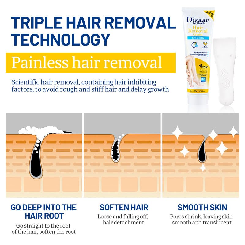- Gentle and effective hair removal: Our hair removal cream is specially formulated to remove unwanted hair from your body and legs without causing any irritation or discomfort.