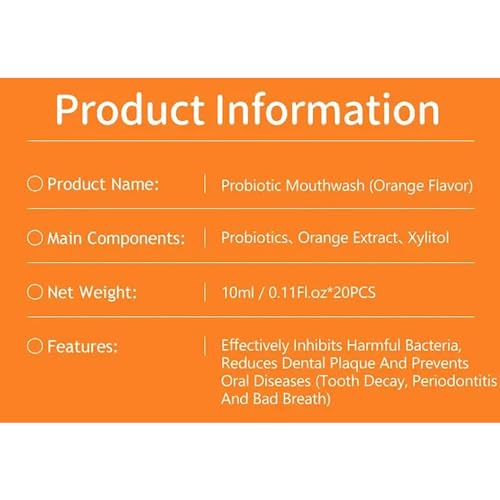Details: Effectively suppresses harmful bacteria, reduces plaque and prevents oral diseases (caries, periodontitis). 【Long Lasting Effect】The product has long-lasting effect. Enjoy fresher breath and a confident smile for up to 12 hours with this Mouth Wash that effectively removes bad breath. 【Relieve Teeth Problems】This Mouth Rinse helps to soothe and heal your teeth without causing irritation. It is suitable for sensitive teeth and gentle on your gums. 【Safe Ingredients】This Mouthwash natural and gentle. You can use it with confidence and enjoy its refreshing taste. 【Portable Mouthwash】With a travel size and a packet design, this Mouthwash Alcohol Free is easy to carry and use anywhere. You can enjoy clear breath and oral hygiene on the go. 【Great Gift】The Mouth Wash for Adults is a great gift. Give it to friends with oral problems, let them have a healthy oral status, healthy teeth, oral freshness, and a more confident smile. They must be very happy. Enjoy a long-lasting effect of freshness and cleanliness with this mouthwash for adults. It is suitable for sensitive teeth and the flavor that leaves your breath cool and pleasant. It also helps to clean teeth stains.