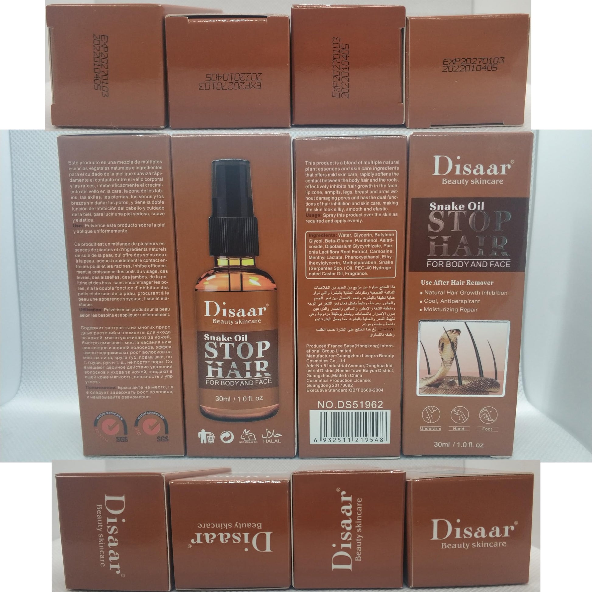 DISAAR BEAUTY Snake Oil Stop Hair Remover Body Face Spray Powerful Permanent Painless Inhibitor Shrink Pores Skin Smooth Natural Moisturizing 30 ML