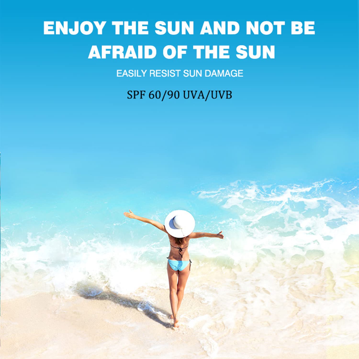- 1. Effectively counteracts the wide UV spectrum and blocks UVA/UVB rays. 2. Sun protection SPF60+ and SPF90+, can block strong sunlight, UV light to prevent getting dark and sunburn. 3. Have a great effect of bleaching and covering the skin.