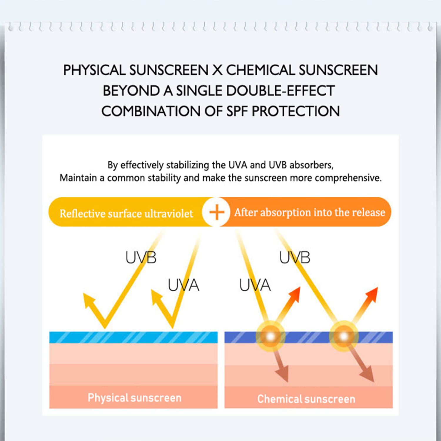 - This sunscreen is mild, fresh and not greasy, a good choice for sun blockers in summer. Smooth texture and lightweight is easy to do makeup and does not clog pores. It can effectively prevent UVA and UVB from protecting the skin from sun damage, and it can also moisturize the skin. Waterproof and sweat proof makes the sunscreen last longer.