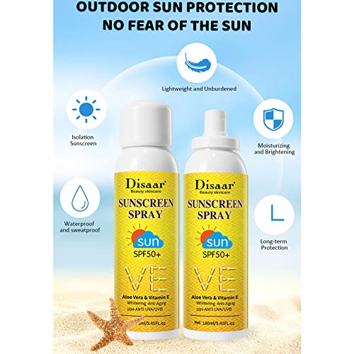 DISAAR BEAUTY Sunscreen Spray SPF50+ Aloe Vera & Vitamin E Moisturizing Anti-Aging 16H - Anti UVA/UVB Skin Protection 160ml / 5.41fl.oz