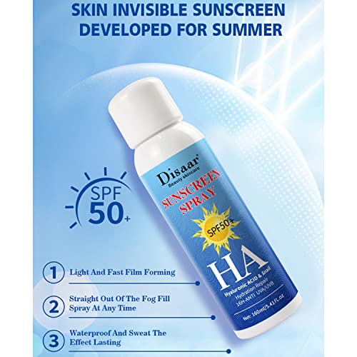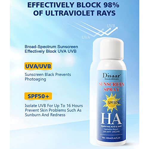 DISAAR BEAUTY Sunscreen Spray SPF50+ HA Hyaluronic Acid Snail Hydration Repair UVA/UVB 160ml/5.41oz