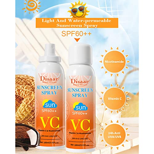 DISAAR BEAUTY Vitamin C Nicotinamide SPF60++ Sunscreen Spray Sun Protection Moisturizing Blocking Keeps Skin Hydrated 24H - Anti UVA / UVB 160ml / 5.41fl.oz