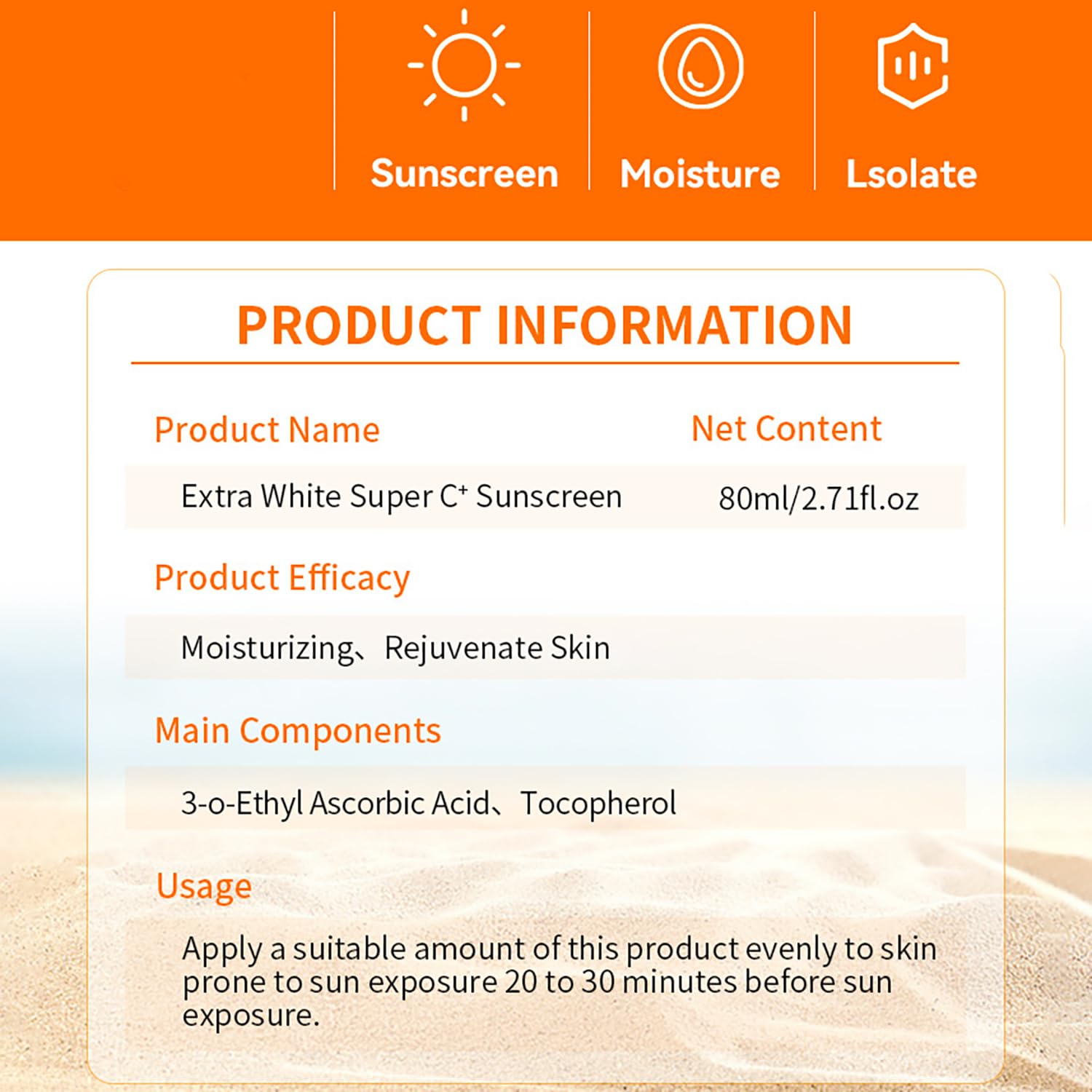 DISAAR BEAUTY Vitamin C Serum Sunscreen SPF 50 PA+++ Moisturizing Rejuvenate Skin Protection UVA/UVB Hydrating 80ml / 2.71fl.oz